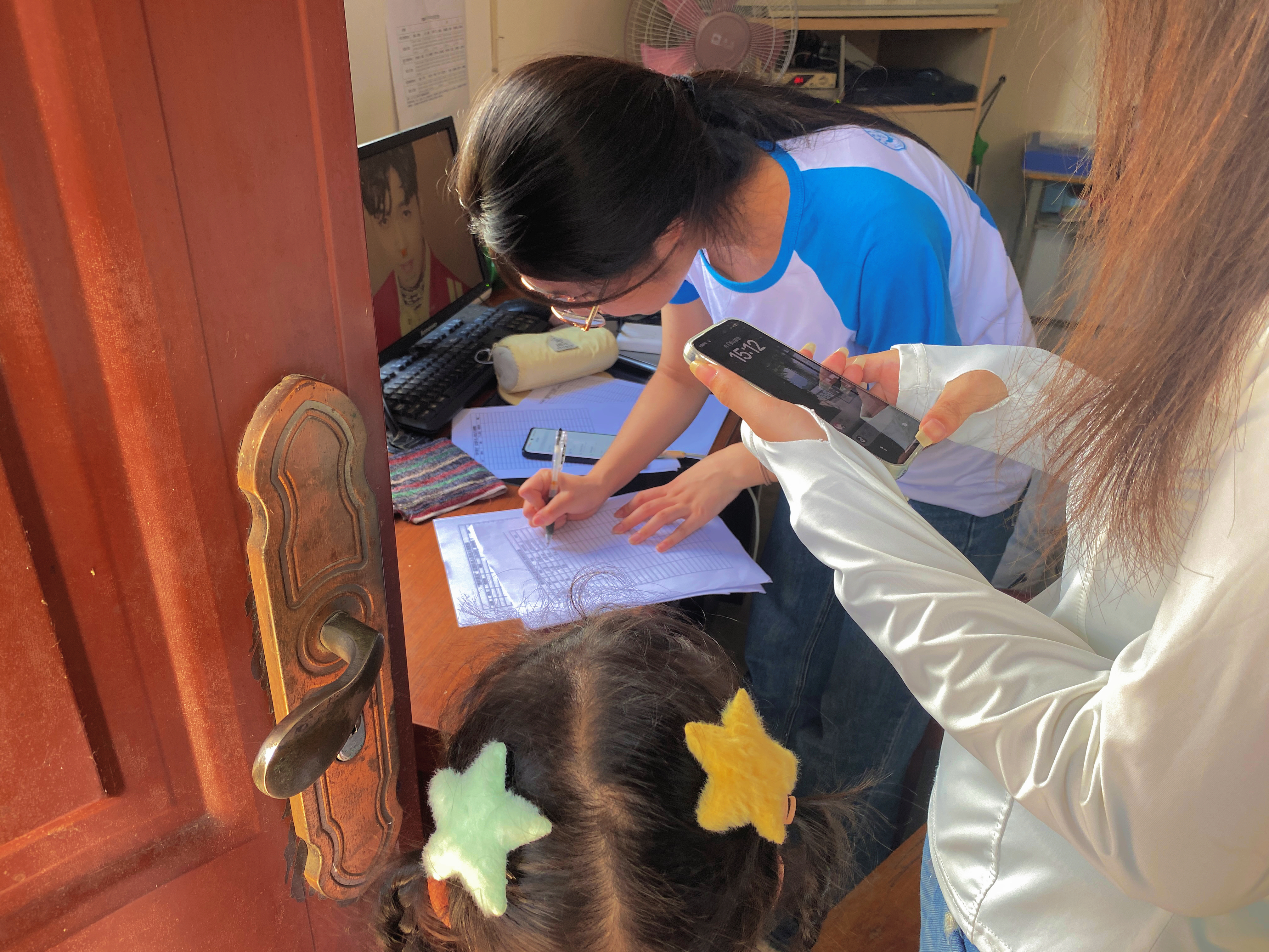暖心招生服务 躬行实践初心。招生现场,队长张子慧在报名处热情接待家长学生。教学组有序引导家长填写信息,耐心解答课程安排;调研组同步完善调研方案。一位带着孩子报名的村民感慨:“大学生们年年来,娃们早就盼着了!”志愿者们忙碌的身影与家长的笑颜交织成生动的实践画卷。
