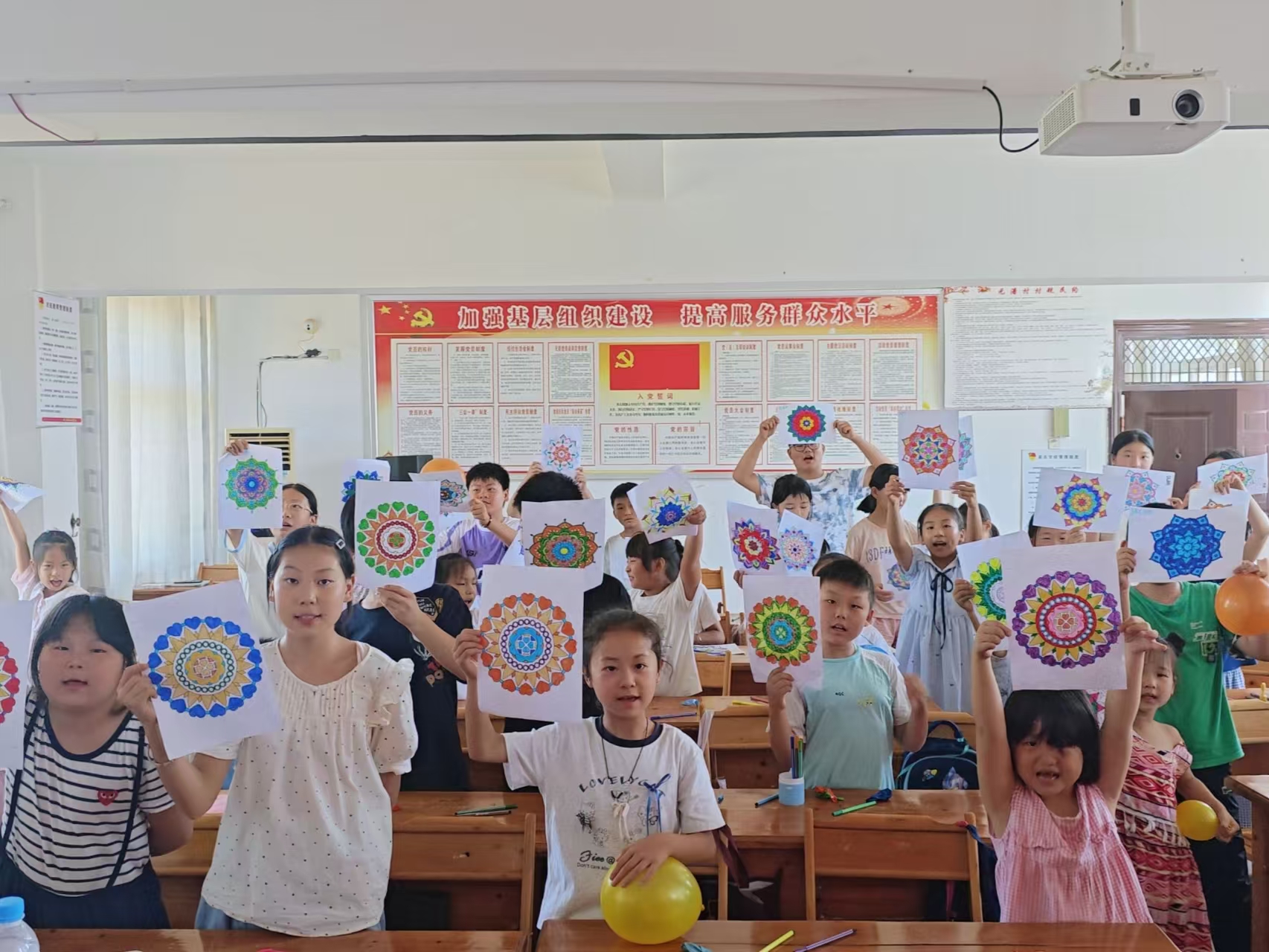 “当孩子用暖色调涂满曼陀罗时,往往代表内心充满安全感。”志愿者指着孩子的画作解释道。“你画我猜”的协作中,孩子们学会观察同伴微表情的“情绪密码”;气球爆破的瞬间,他们也能够释放心理压力。这种浸润式心理引导,如同田间灌溉,在潜移默化中滋养心灵根系。