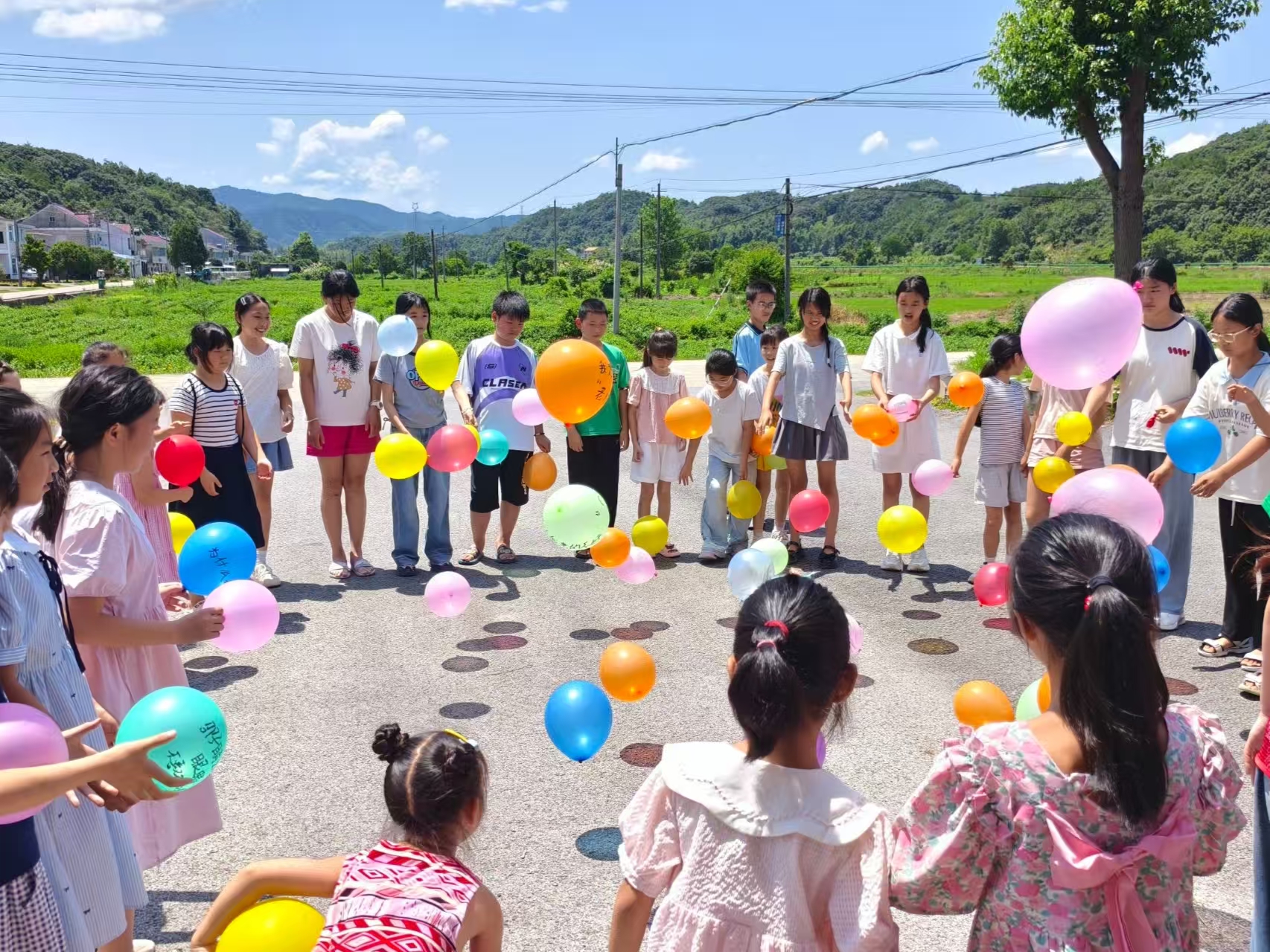 活动以"名字大作战"破冰游戏拉开序幕,孩子们用童趣的自我介绍打破隔阂,欢笑声中,孩子们的距离悄然拉近;“你画我猜”环节里,小组成员以肢体动作与语言表达传递词语,孩子们的表现力和创造力得到锻炼,团队协作能力也得到提高;曼陀罗心理绘画时,孩子们用麦穗黄、秧苗绿等自然色系填涂图案,将田园意象融入内心表达;压轴的"气球爆破赛"中,写满烦恼的气球在田垄间炸裂,让压力随碎片散落田间。