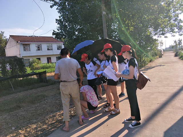 7月27日,团队成员来到舒城中学和慈母宫。上午8:30,队员们抵达舒城中学,与安徽师范大学83届中文专业毕业生、现任舒城中学校长何登保先生进行深入的交流。访谈中,何校长向队员们讲述了他们那个年代上学的乐趣:以学习为乐,以读书为荣。此外,校长还分享了他在师大上学时的岁月故事及毕业后的工作经历,并说出对母校师大的美好期望,队员们认真聆听,感慨万千。访谈结束之后,队员们迅速赶往慈母宫分发问卷,丝毫不敢懈怠。烈日炎炎下,团队成员认真向当地百姓讲述此次社会实践的目的、意义并虚心请求其为此次调研填写问卷,当地百姓热情配合,给予支持。下午4时,问卷填写完毕。至此,一天的任务得到顺利完成。