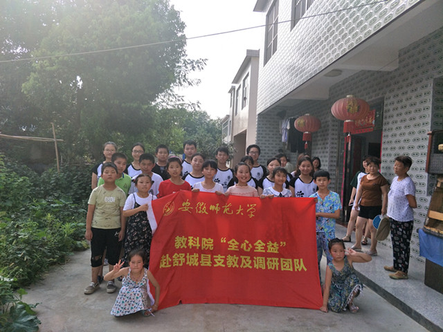 本网讯(教科院 苏晓月)舒城县作为六安市的贫困县区,经济落后,留守儿童众多。为贯彻党的十九大精神,安徽师范大学教科院开展了本次“全心全益”赴六安市舒城县爱心支教活动,力求为落后农村地区教育奉献出一份力量。7月28日, 以教研为主要特色的赴舒城县爱心支教及调研社会实践活动顺利结束。