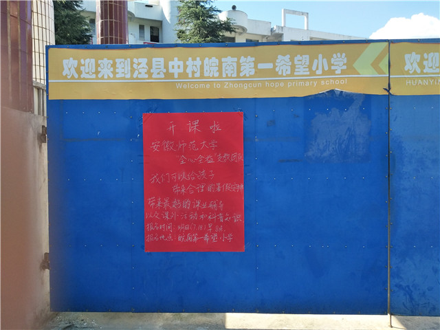 在活动开展前期,团队利用微博,QQ,微信等媒体渠道,将成员简介,志愿服务计划等用丰富的语言向公众展示,起到显著的宣传效果。同时,在到达泾县后,团队通过走访、张贴海报等方式向皖南第一希望小学附近的居民传达志愿活动的相关信息,为志愿服务活动的开展做了良好的铺垫。宣传工作做到位,团队也致力于构建良好的支教环境,来到泾县后,团队成员分工合作全面细致地打扫了即将开展支教活动的教室,并整理好教学器材,书本等,团队还将生活区和教学区巧妙隔开,以便更好地开展支教活动。
