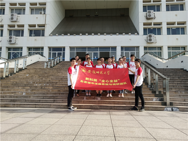 暑期社会实践对于当代大学生是一段利用专业知识,用赤诚之心回馈社会的经历。教科院“全心全益”赴宣城市泾县志愿与调研团队会继续保持良好的姿态,保质保量地完成此次实践活动。