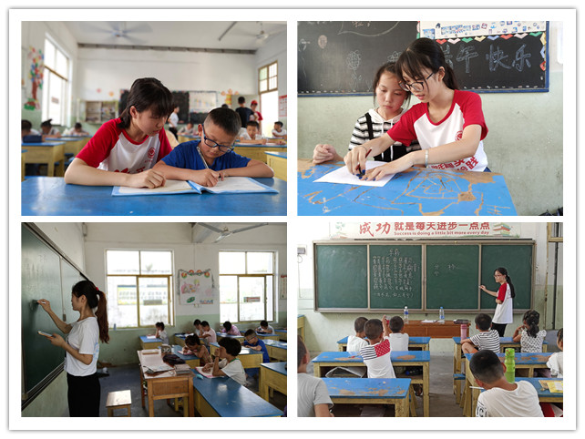 7月19日,支教活动正式拉开帷幕。团队根据年级的不同划分高年级班和低年级班,并分配不同的人员进行辅导或授课。课业辅导课上,孩子们认真思考,积极举手提问,队员们耐心解答他们提出的问题,课上互动增进了团队成员与服务对象之间的感情。团队成员还根据各自的专业特色为孩子们开展了一系列兴趣课程,教育学专业的队员将诗经中的《子衿》通过生动有趣的方式教给孩子们,学前教育专业的队员教授美术,手工课程,做到学以致用,孩子们也全面获取了丰富的知识。