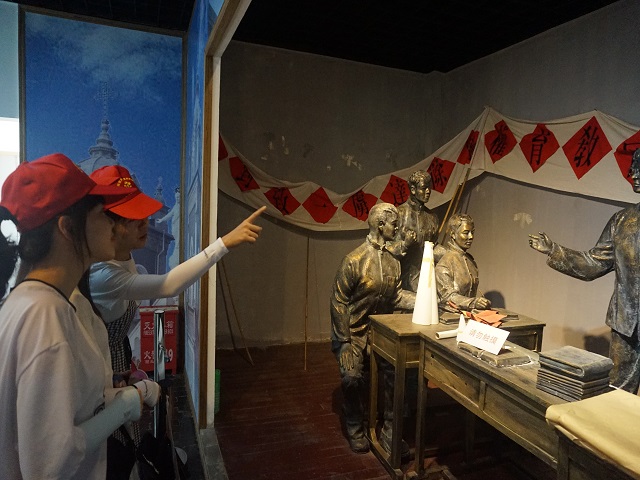 上午8点半,团队成员怀着激动的心情在园区管理人员的安排下进入园内。在场馆志愿者的引导下,队员们依次参观了6个展厅,通过图片、遗物、信件、文献和视听多媒体资料等,回顾中国共产党浴血奋战的艰辛历程,深切缅怀王稼祥同志和老一辈革命家为中国革命做出的卓越贡献,体会到他爱党爱国的伟大情怀。两个小时的参观,同学们都收获颇丰。最后,在王稼祥铜像前,大家庄严宣誓并合影留念,提醒自己作为中国当代大学生应尽的责任与义务。