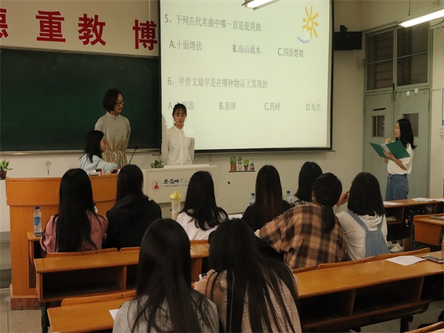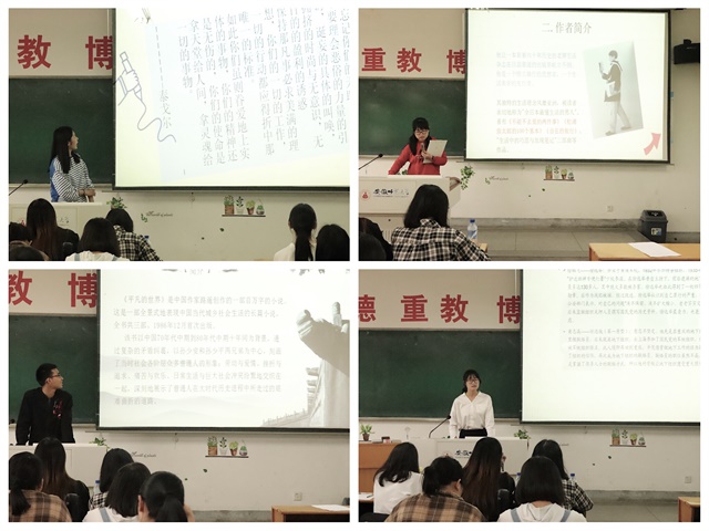 经过初赛与复赛的筛选,共有六名同学顺利进入决赛。上午9时30分,活动正式开始。在读书汇报的环节中,每位选手通过PPT展示自己对所选书籍独到的见解。孟玉洁、关若琦、张素梅、徐礼潜,李梅,陶芮六名同学分别以《不负时代,无悔青春——读< 五四运动史>有感》,《读< 乡村教师>争做四有老师》,《如何看待我们的寂寞与恐惧——读< 不能不爱的两件事>有感》,《< 平凡的世界>的了解与感悟》,《在烈火中永生——< 红岩>》,《无问西东——< 南渡北归>读书汇报》为主题向现场观众进行汇报。选手深情并茂,语言生动简练,时而解释文本,时而阐述观点、畅谈体会,赢得了现场观众的阵阵掌声。问答环节中,参赛者积极抢答,不分仲伯,现场气氛被推向高潮。活动最后由16级心理学专业胡思佳从背景、总结等方面对其表现进行点评,并提出改进建议。