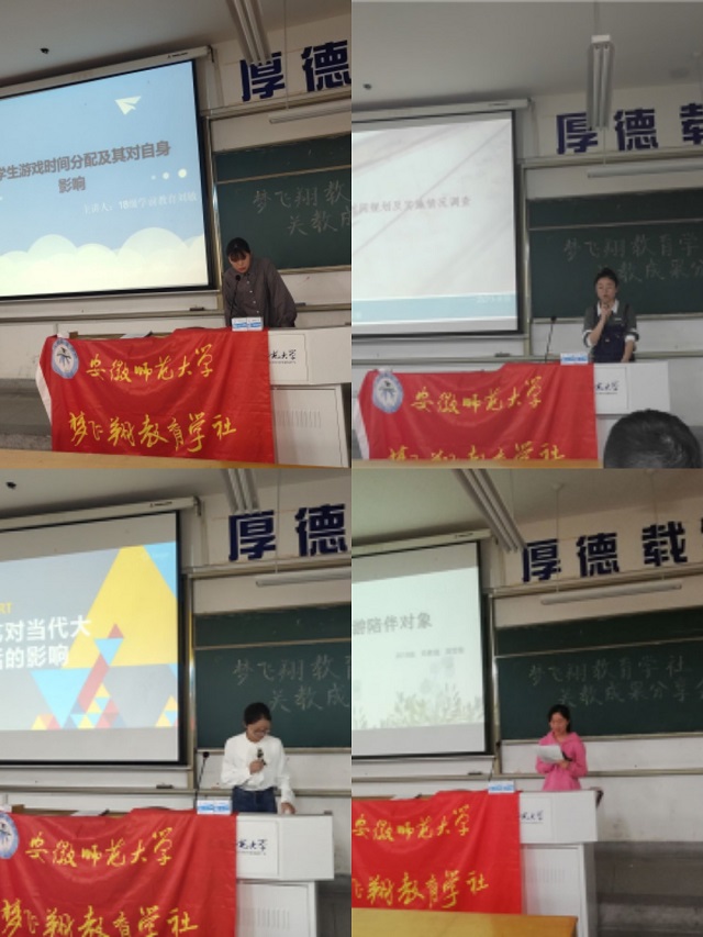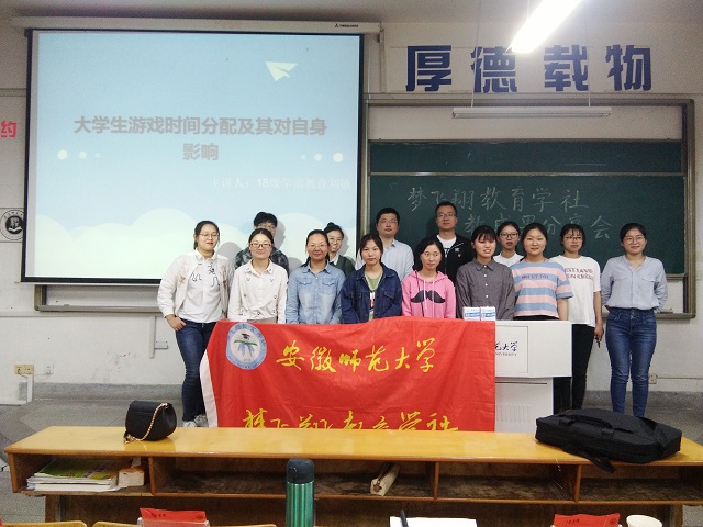 本网讯(教科院 张晓庆)为了解我校大学生日常学习与娱乐情况,帮助同学们解决时间分配不合理等问题,我校梦飞翔教育学社于20194月2016点在田楼8202教室举办“关注教育小组成果分享会”。我院龚伟老师、李卯老师、梦飞翔教育学社全体成员以及部分本科生参于此次活动。