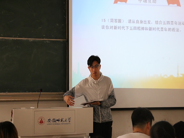 决赛分为上、下半场,八位参赛选手准备充分,结合个人创作的PPT作品,畅谈对五四精神的思悟和所做作品的设计思路。制作精巧的PPT演示与发人深省的主题演讲让在场观众受益匪浅。比赛的中场互动环节,主持人组织在场观众进行五四知识问答,现场气氛活跃,同学们踊跃参与。经过紧张有序的演讲环节后,各评委从作品主题、模板设计、演讲内容等方面进行打分,评选出一二三等奖,并为选手颁奖。比赛最后,程啸老师就各选手的作品进行认真深刻的点评,向同学们提出期望和要求。