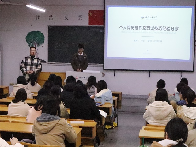本网讯(教科院 俞晓雨)打造优质简历,抓住就业机遇。为帮助大四学生更加充分有效地准备日后应聘,助推毕业生顺利就业,12月23日晚7点,学院在田楼8410教室成功举办《职场导航系列讲座——简历制作与面试技巧》。本次讲座特邀芜湖他与月光文化传媒有限公司创始人,我校文学院杰出校友卢浩老师主讲。教科院2020届毕业生和其他年级共计130余人参加了此次讲座。毕业班辅导员龚伟老师主持活动。