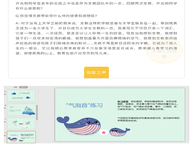 两个星期的云端教学在小朋友们的反馈视频中圆满结束。和县的同学们在云端课堂中学到了新知,增强了对音乐的兴趣,陶冶了自身的艺术情操。队员们也通过云端授课锻炼了教学能力,提升了专业素养,获得了进步与成长。 “全心全益· 弦歌之声”云端音乐教学课堂实践团队的成员们将永远带着对教育工作的爱与责任,在学习中丰富知识,在实践中磨练本领,以真诚的心与积极的行动守护儿童成长。
