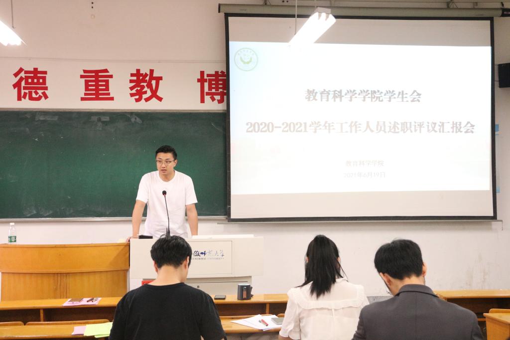 本网讯(教科院 何静涵)时光匆匆,岁月如梭,2020-2021学年已接近尾声。为总结过去一年的工作成果,促进团委学生会工作改进,6月19日下午,教科院团委学生会于田楼8401教室举行2020-2021学年工作人员述职评议汇报会。会上,院学生会主席团成员与各部门负责人、院团委学生副书记与团委各部门负责人进行述职,团委书记程啸以及全体团委学生会成员参与本次评议。