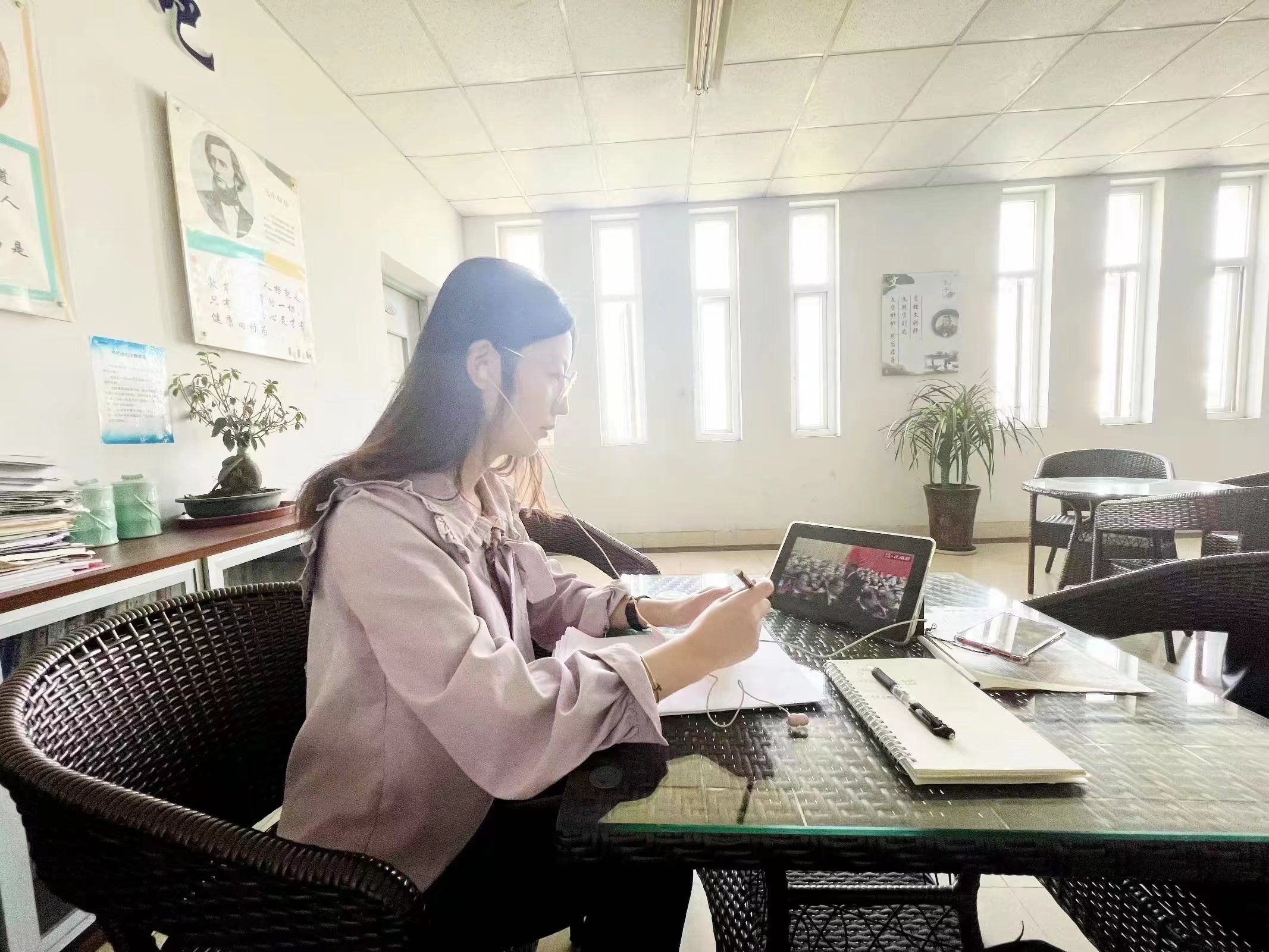 在收看过程中,党员同学们精神饱满、全神贯注认真聆听报告,并认真地做笔记。