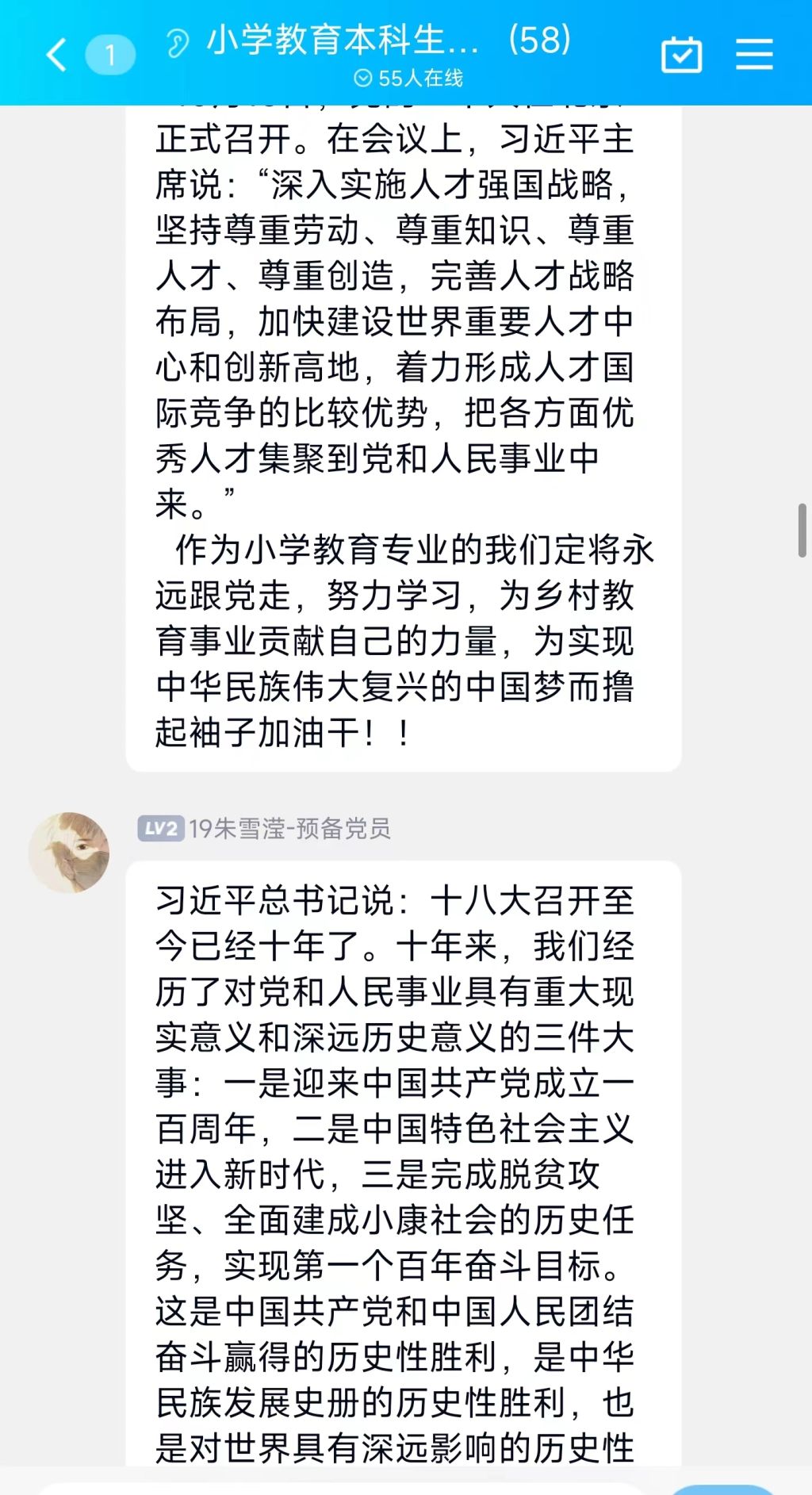 10月16日上午,小学教育本科生党支部组织全体党员和入党积极分子于线上观看中国共产党第二十次全国代表大会开幕直播,认真聆听了习近平总书记代表第十九届中央委员会所作的报告。
