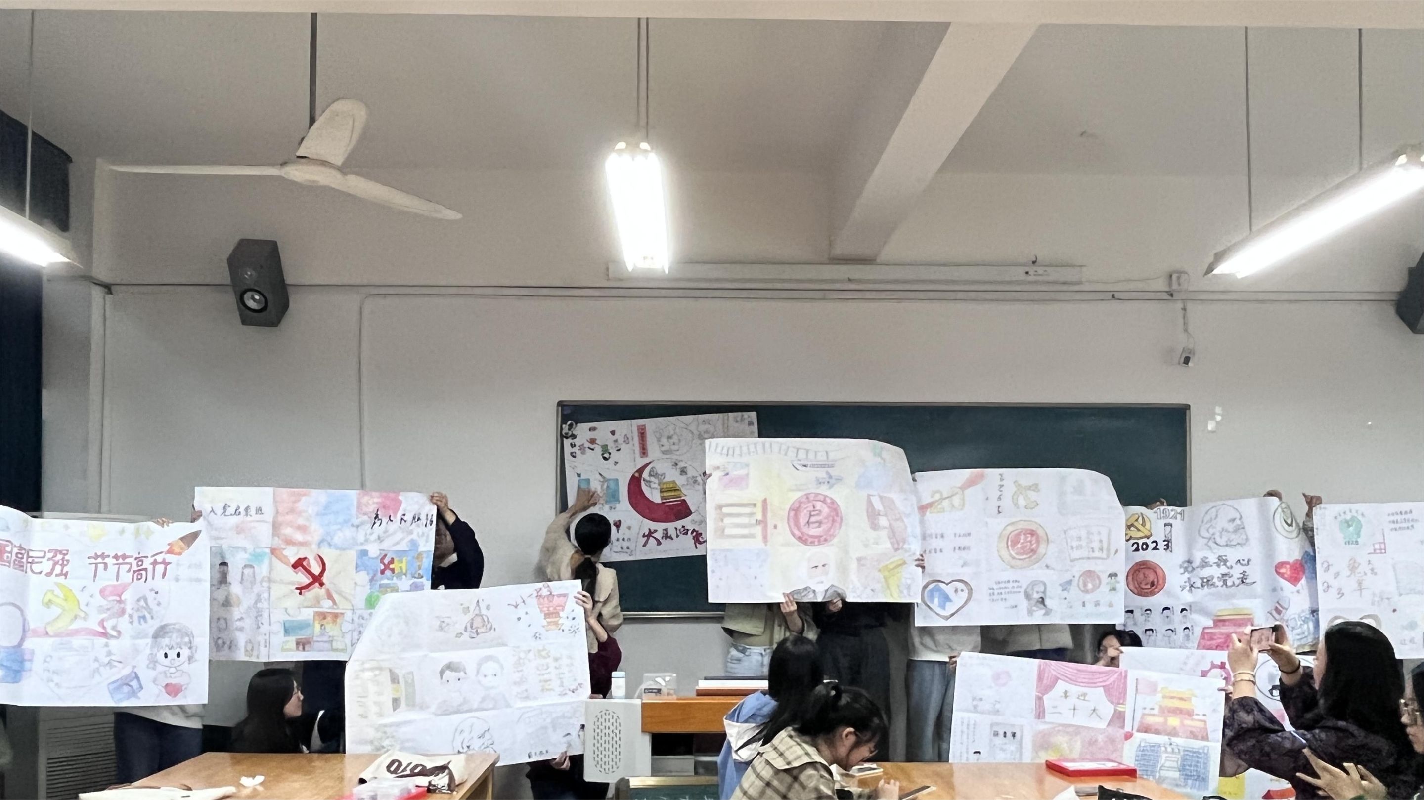 在如火如荼的绘画活动结束后,启蒙班10个小组成员依次展示并介绍组员合作完成的九宫格绘画作品,以“回望过去,着眼现在,期望未来”,“反思总结,不断进步”,“坚定信仰,听党话,跟党走”等为主题的作品展现了本学期各小组参与理论学习与实践活动的所思所感。学员们的画面天马行空,充满着对中国共产党的向往和对启蒙班的热忱。