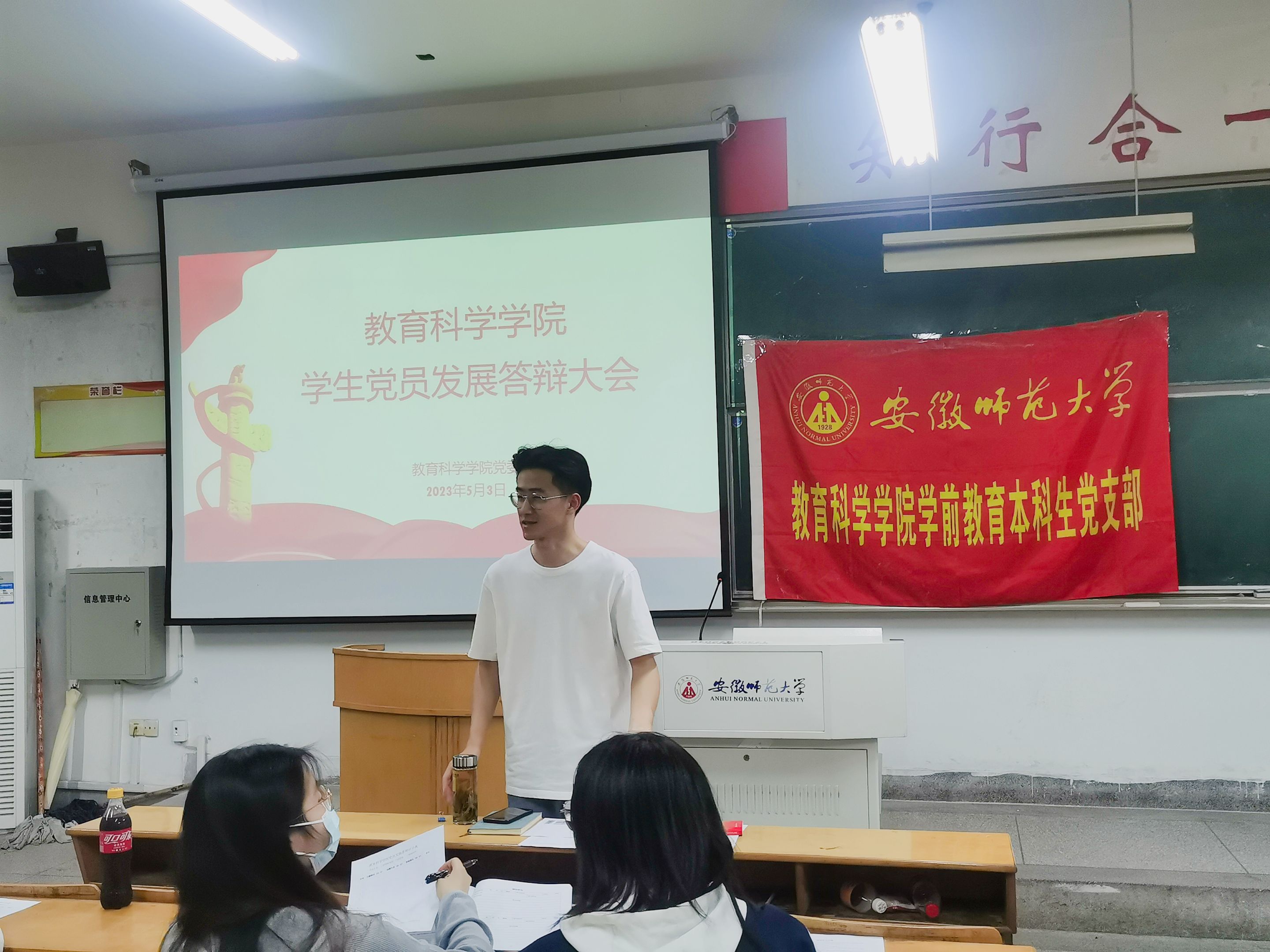为确保党员发展质量,2023年5月3日晚,365英国上市官网学前教育本科生党支部在田楼8306教室举行学生党员发展答辩大会。学前教育本科生党支部副书记付银行主持会议,支部学生党员和入党积极分子代表参会。