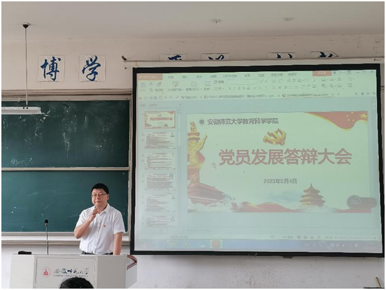 5月4日中午,365英国上市官网党委举办2023上半年研究党员发展答辩大会。教育学、心理学、教育技术学、教育硕士四个研究生党支部共16位入党积极分子参加此次答辩,学院党委书记许国飞、院长李宜江、副院长韩建涛、吴文涛、学院组织员兼党委秘书袁黎平,研究生党支部副书记丁晓云、王礼军及相关辅导员出席答辩大会并担任答辩评委,答辩大会由教育硕士研究生党支部书记李昊主持,四个支部全体党员、预备党员及部分入党积极分子参与现场评议工作。