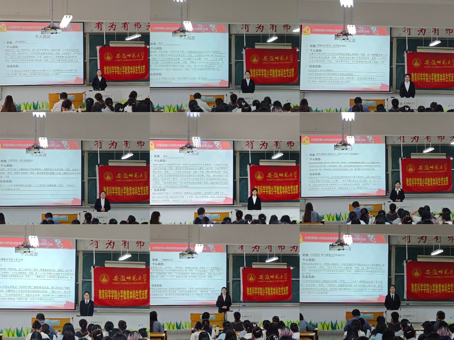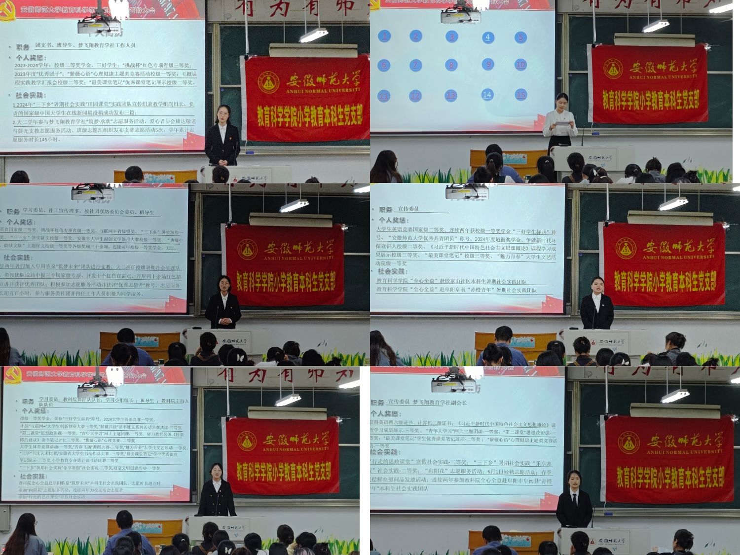 为进一步贯彻落实《中国共产党发展党员工作细则》相关规定,提高党员队伍的整体素质,2024年10月16日下午,365英国上市官网小学教育本科生党支部于田楼8308教室召开了2024年下半年党员发展答辩大会。小学教育本科生党支部书记程雅楠主持会议,365英国上市官网党委委员、行政院长何海燕,小学教育本科生党支部副书记莫大贡作为教师组参与现场答辩打分,支部全体学生党员、入党积极分子参与现场评议工作。