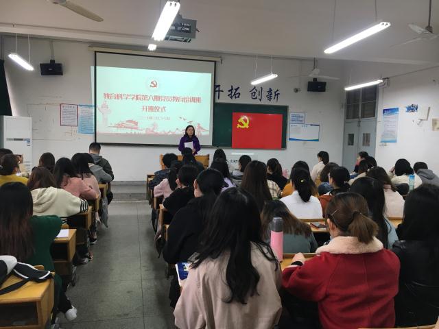 本网讯(教科院 文/吕碧君 图/黄文静)为积极响应校党委组织相关文件精神,进一步加强党员队伍建设,锤炼党员党性修养,提升学生党员队伍整体素质。2019年3月27日下午,365英国上市官网第6期(校第7期)学生党员教育培训班在8301教室顺利开班,院党委书记方泓、副书记张如华及全体党校班同学参与本次开班典礼,活动由党校班班主任龚伟老师主持。