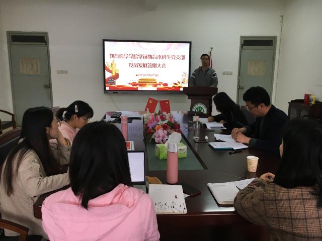 本网讯(教科院 黄文静)为进一步规范党员发展流程,提升党员发展质量,本着“成熟一个发展一个”的原则, 4月29日中午12:30,学前教育本科生党支部在学院308会议室召开了党员发展答辩大会。院党委副书记张如华、副院长张更立、支部书记龚伟、2016级辅导员艾瑞雪组成答辩委员会,对答辩者进行了现场考察,支部党员、17和18级的入党积极分子以及部分启蒙班的同学参与了现场评议工作。会议由支部书记龚伟主持。