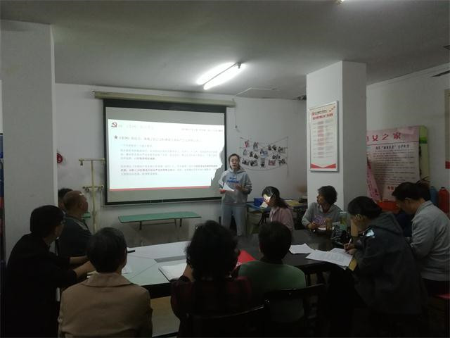 第一党小组成员面向体育场社区的党员同志开展《中国共产党支部工作条例(试行)》专题讲解活动。面对社区党员们的热情,王雅同学说:“此次实践活动中,同学们不仅感受到集体合作的重要性,而且加深了对《条例》的理解,增强了党员同志的规则意识及责任感。我们党小组将会长期开展面向社区的实践活动,利用专业知识与个人特长更好服务社区。”