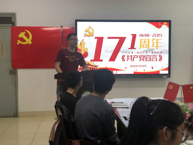 本网讯(教科院 卢皓玮)为进一步帮助启蒙班同学认识经典·解读经典·贯彻经典,经过前两期谭莉和林子平同学对《共产党宣言》的背景和内容的初步介绍, 5月30日晚七点半在308会议室举行了《共产党宣言》时代价值的理论宣讲,本次活动由龚伟老师主持。
