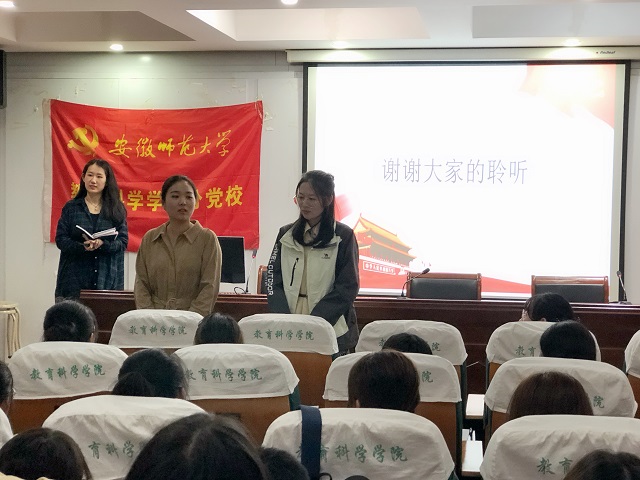 支教西南边陲,发挥榜样引领。10月19日晚,教科院于田楼B座学术交流中心举办座谈交流会,特邀安徽师范大学第20届研究生支教团成员宁嘉惠、苏镇东主讲,培训班副班主任谭茹轩以及我院第29期入党积极分子培训班全体学员参与。