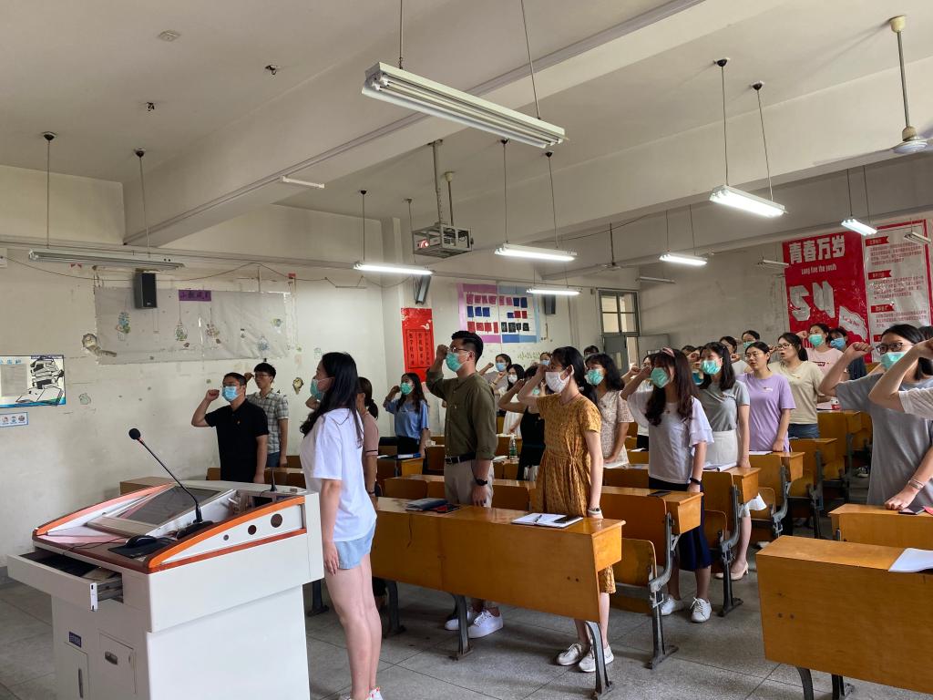 随后,在学院的组织下,大家集体重温了入党誓词,“我志愿加入中国共产党,我志愿加入中国共产党,拥护党的纲领,遵守党的章程,履行党员义务……”短短的几句话在今天具有了不一样的意义。、2020届毕业生党员将整装再出发,他们用自己在母校的行动诠释了誓言,而支部也将在一届又一届的传承中不断发展。