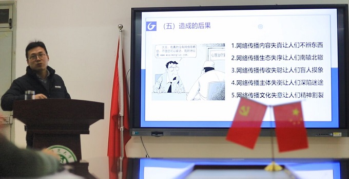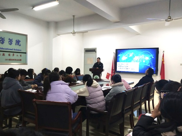 本网讯(教科院 刘玉洁)12月3日19:00,教科院“入党启蒙教育”培训班于学院308会议室如期开班,特邀新闻与传播学院马星宇老师开展《做新时代网络正能量的传播者》为题的理论授课,龚伟老师、驻班党员以及启蒙班学员认真听取了课程。