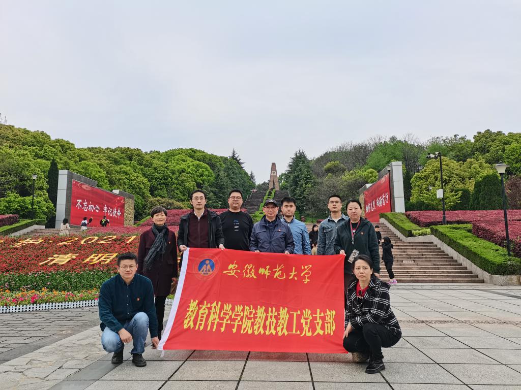下午3点,教育技术学教工党支部9名党员教师在支部书记张克松的带领下前往芜湖市神山烈士陵园。老师们来到革命烈士纪念碑前,瞻仰烈士纪念碑,向革命烈士敬献鲜花,缅怀革命烈士的丰功伟绩,寄托对革命先烈的无限哀思。活动移步室内,在芜湖烈士纪念馆里全体党员重温入党誓词;跟随纪念馆讲解志愿者的步伐参观烈士纪念馆,进一步重温革命岁月,缅怀革命先烈。