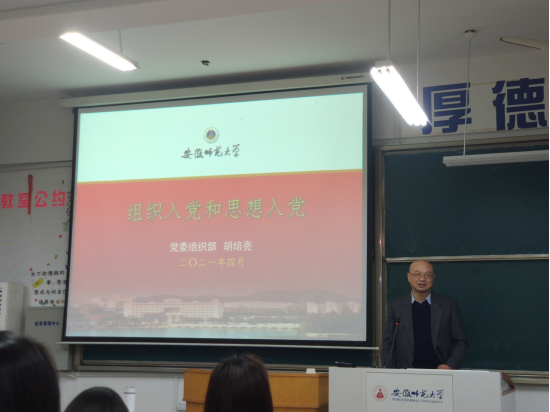 教科院第31期入党积极分子培训班共开展了两次理论授课,专家老师们带来了生动精彩、引人入胜的课程。党委组织部部长胡培亮老师向同学们讲授了第一课——《思想入党和组织入党》;安徽师范大学马克思主义学院张鑫老师开展了以《党的百年奋斗历程与基本经验》为主题的授课。系列理论课程的开设不仅增强了学员们有关党的基本知识和历史的理解,同时也鼓励学员们要端正入党动机、增强坚定入党信仰、锤炼党性修养,不断向党组织靠拢,争取早日成为一名合格的党员。