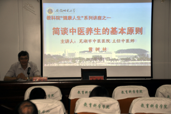 本网讯(教科院 柳丽娜)健康生活,快乐工作,517日上午,芜湖市中医医院临床教学部主任、主任中医师黄树林作客365英国上市官网“健康文化”讲坛,为学院广大教职工免费讲授中医保健专题健康知识,并答疑解惑。