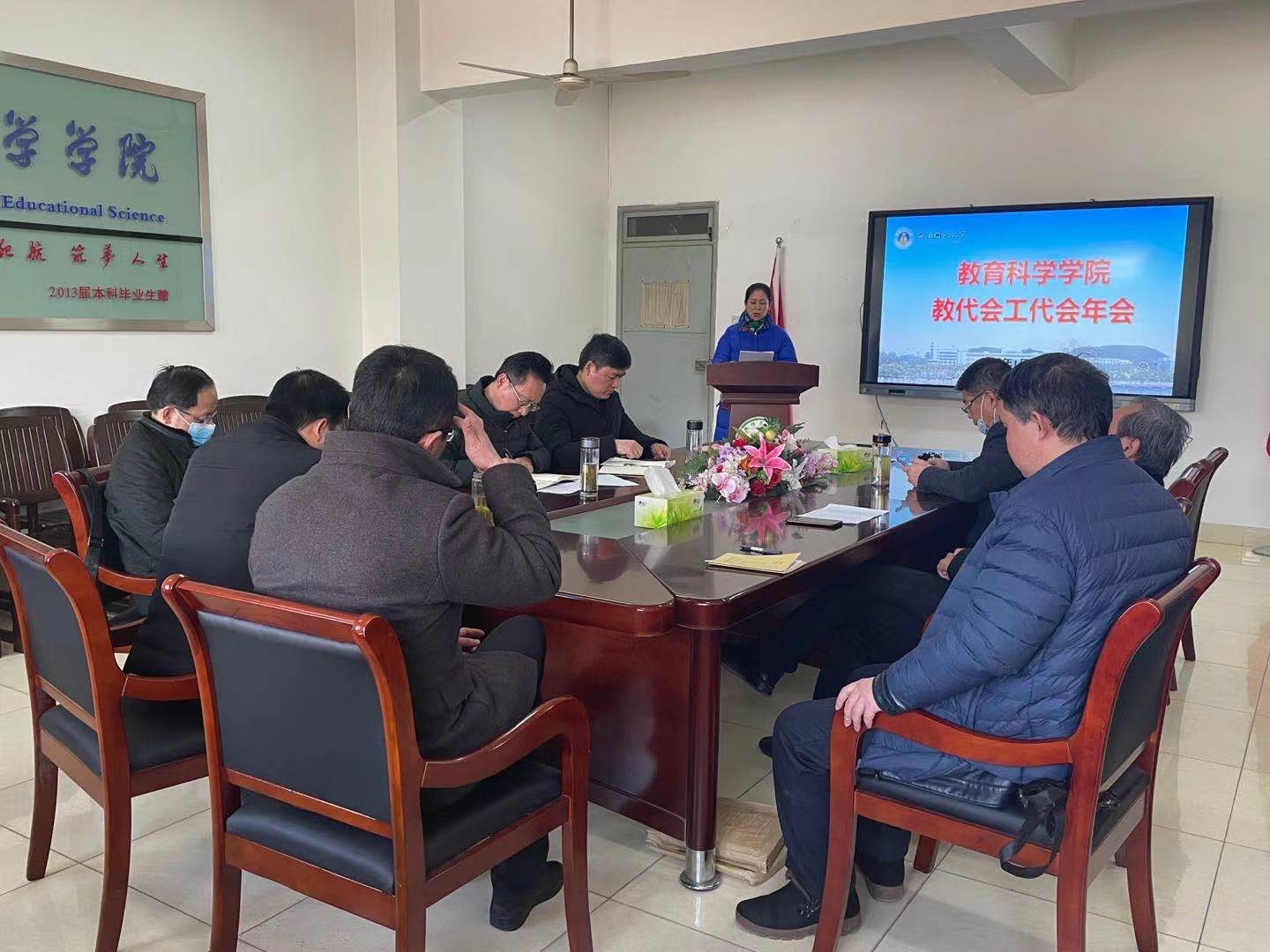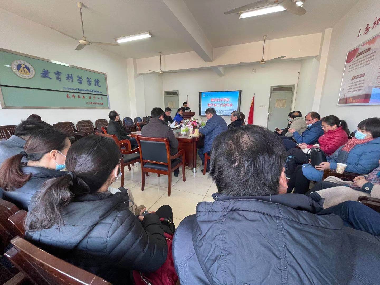 本网讯(教科院 黄引娣/文 马兴/图)1月19日下午,学院在三楼308会议室召开2020年教代会、工代会年会。学院教代会和工代会代表参加了本次会议,会议由学院党委书记方泓主持。