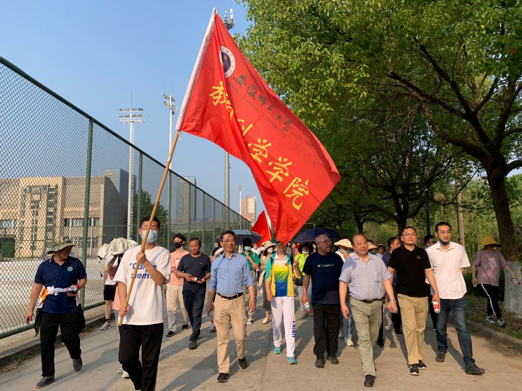 老师们意气风发,迈着矫健的步伐行进在华津校区美丽的校园里,或阔步向前,或边走边一路畅聊,鲜红的院旗高高飘扬,大家一路欢声笑语,既放松了身心,也锻炼了身体。