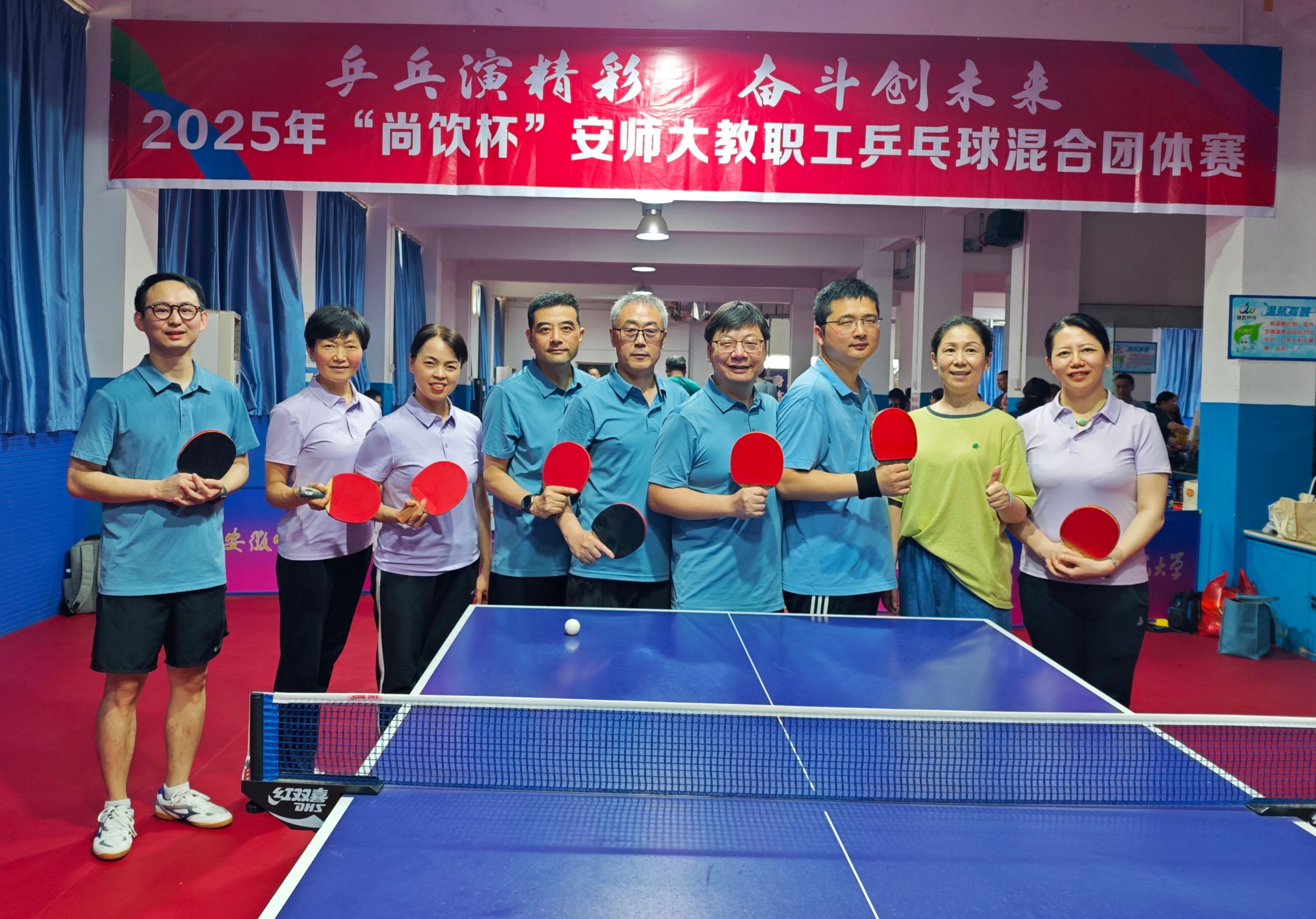 5月17日、18日,由教育工会和校教职工乒乓球协会主办、校教职工乒乓球俱乐部和起点乒乓球俱乐部承办、尚饮控股集团有限公司协办的“乒乓演精彩 奋斗创未来”2025年“尚饮杯”校教职工乒乓球混合团体赛在赭山校区教职工乒乓球俱乐部举行。我院教职工乒乓球队经过顽强拼搏,一路过关斩将,喜获第八名。